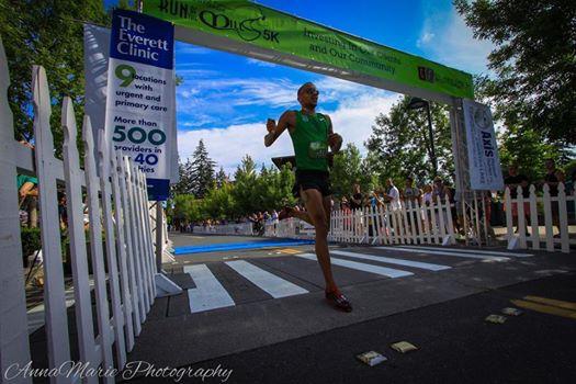 The winner! Congratulations to Jordan McNamara, winner of the 2014 Run of the Mill 5K with a new course record of 14:11!